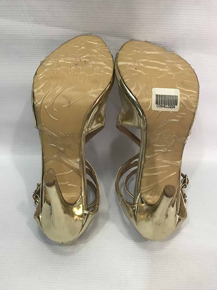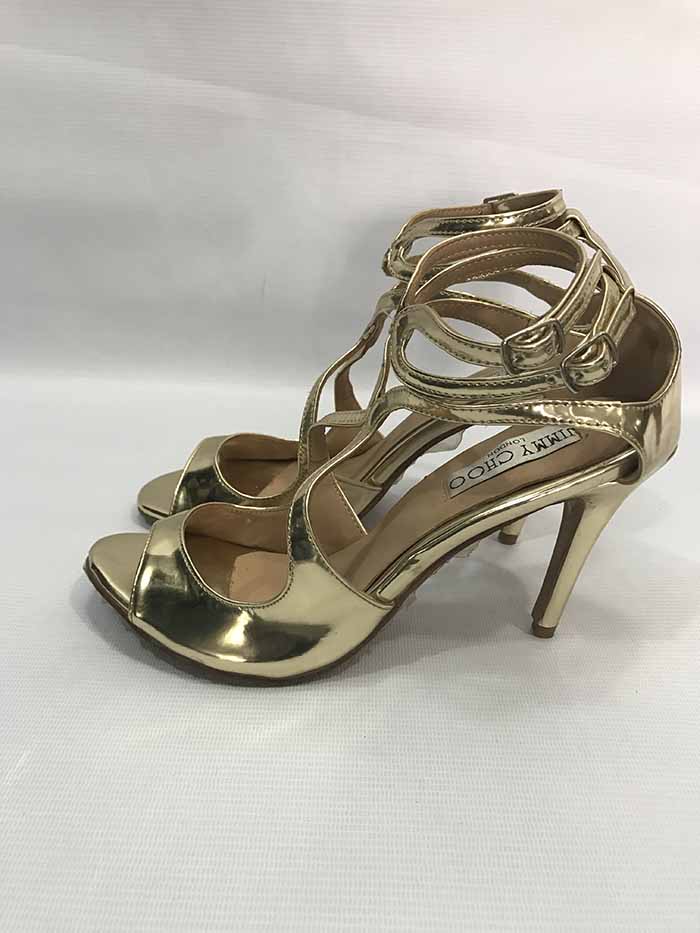 Gold high heel sanders by Jimmy Choo.