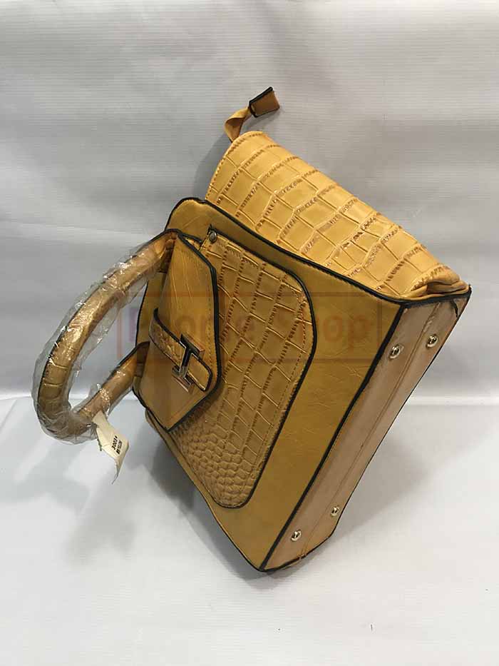 Yellow designer hand bag.