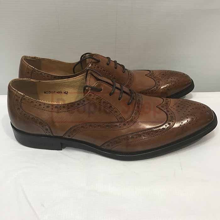 Brown laced leather cover shoe.
